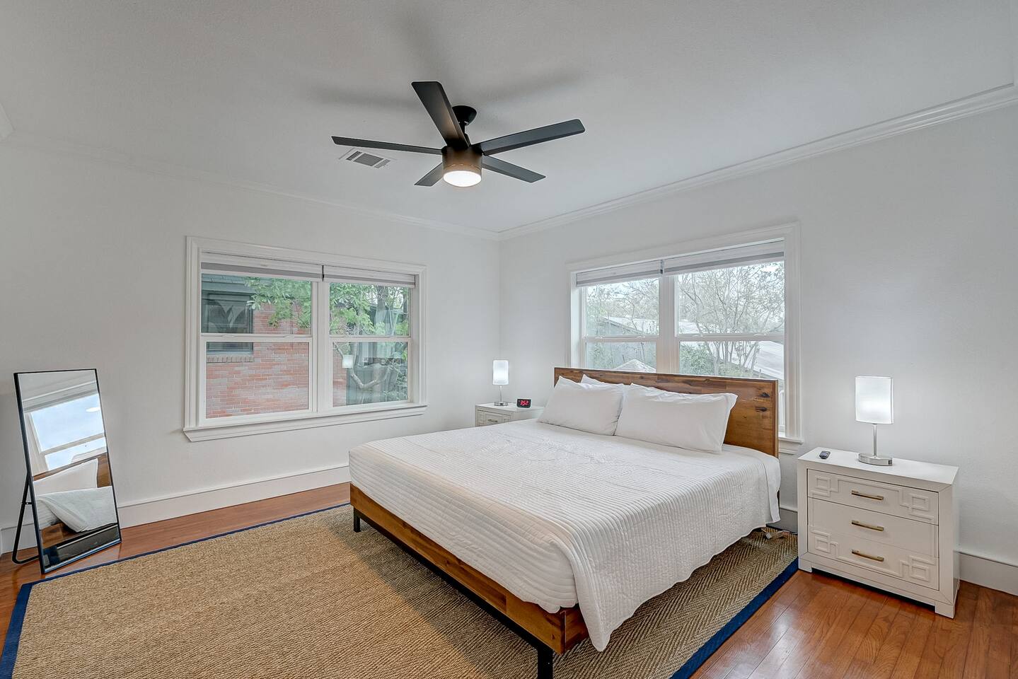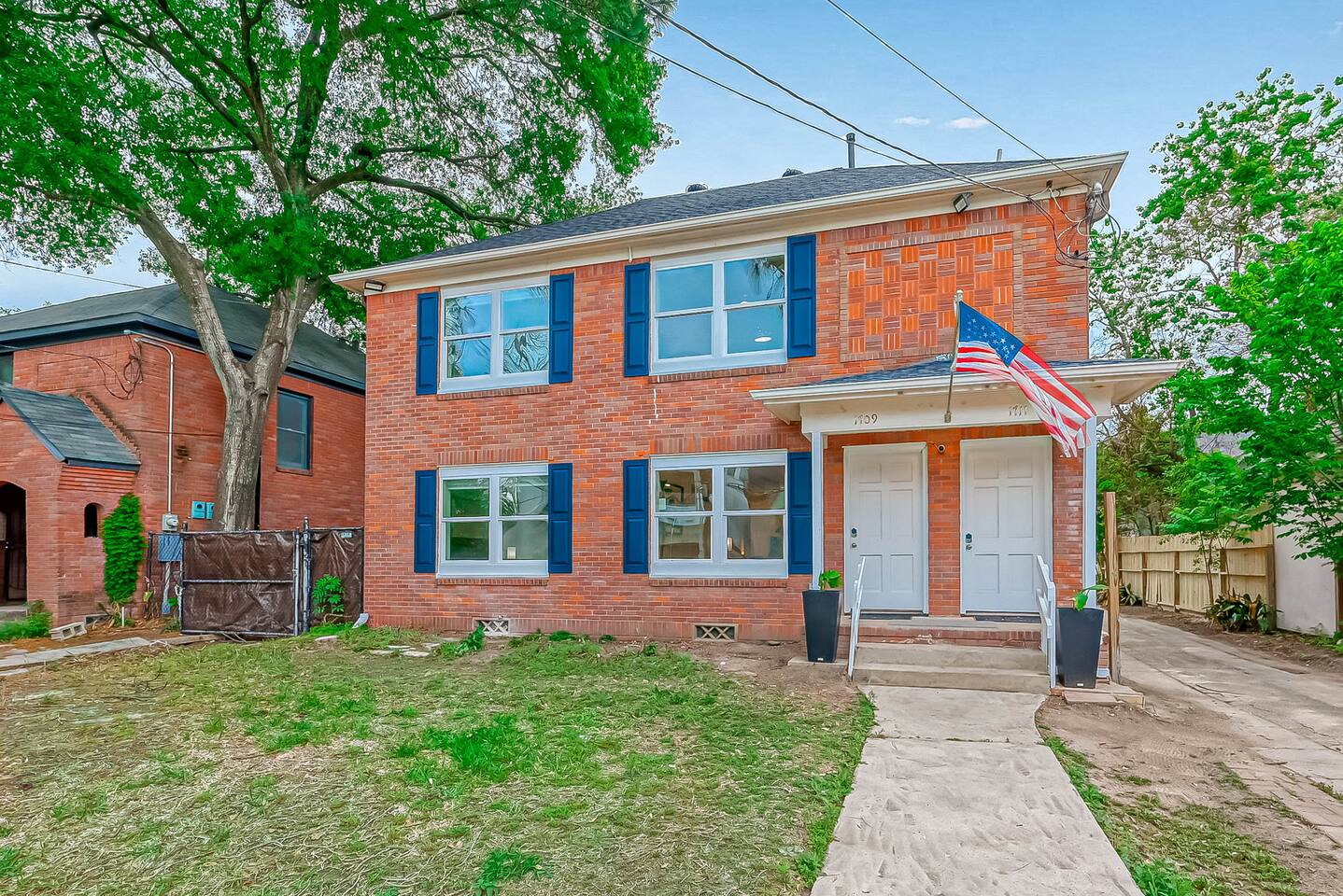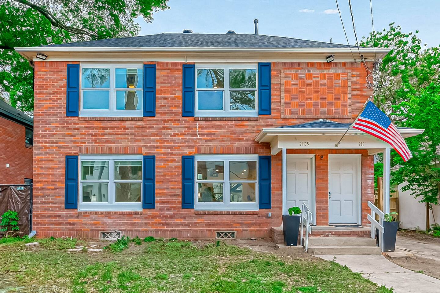 ***We always welcome guests interested in 30+ days reservations*** This newly remodeled ~1,000 sq ft duplex first floor apartment is located in the heart of Houston and offers 2BR & 1BA. We are walking distance from Houston's best restaurants, shops, and sights. The open-concept living and dining room is tastefully decorated with a modern-chic design and features a fireplace and plenty of natural light. The fully-equipped kitchen boasts new appliances, classic white cabinets, and white subway tiles. The bedrooms are equipped with king-sized beds, TVs, and connected to a 3-piece bathroom with newly remodeled vanities and subway tiles. The outdoor area is covered and decorated with hanging lights, making it suitable for any weather. It features patio furniture, a picnic bench, and a ping pong table. Pets are welcome, and the house has gated front and back areas for dogs to play in.