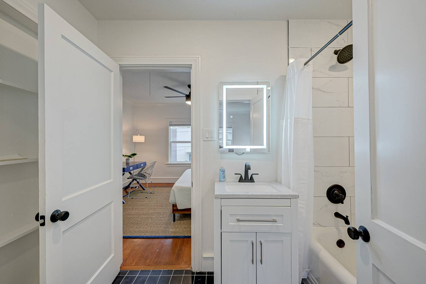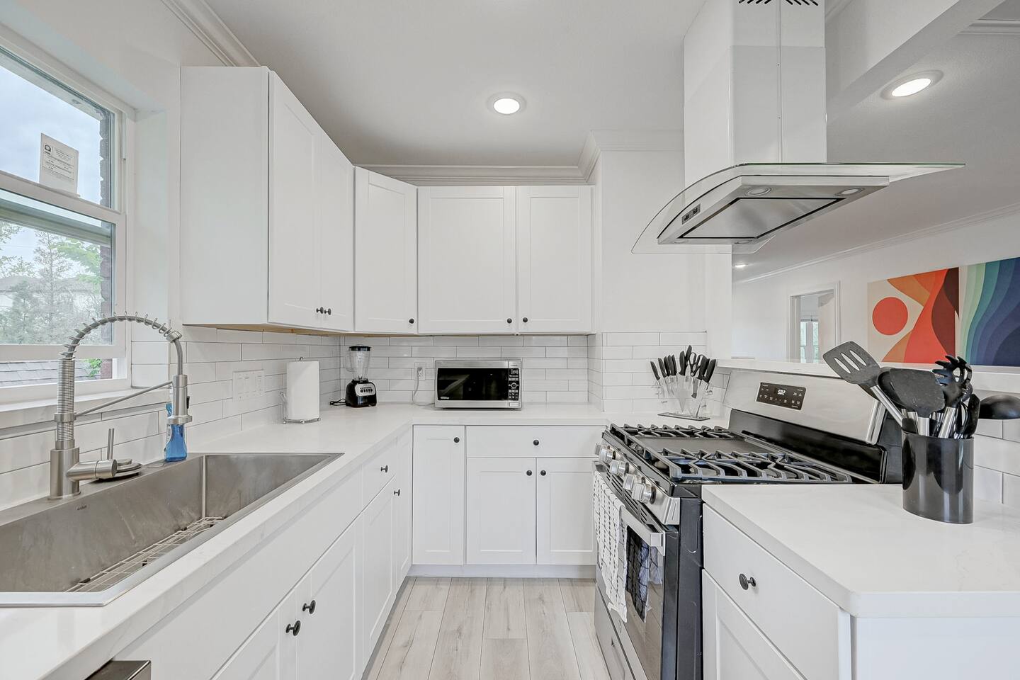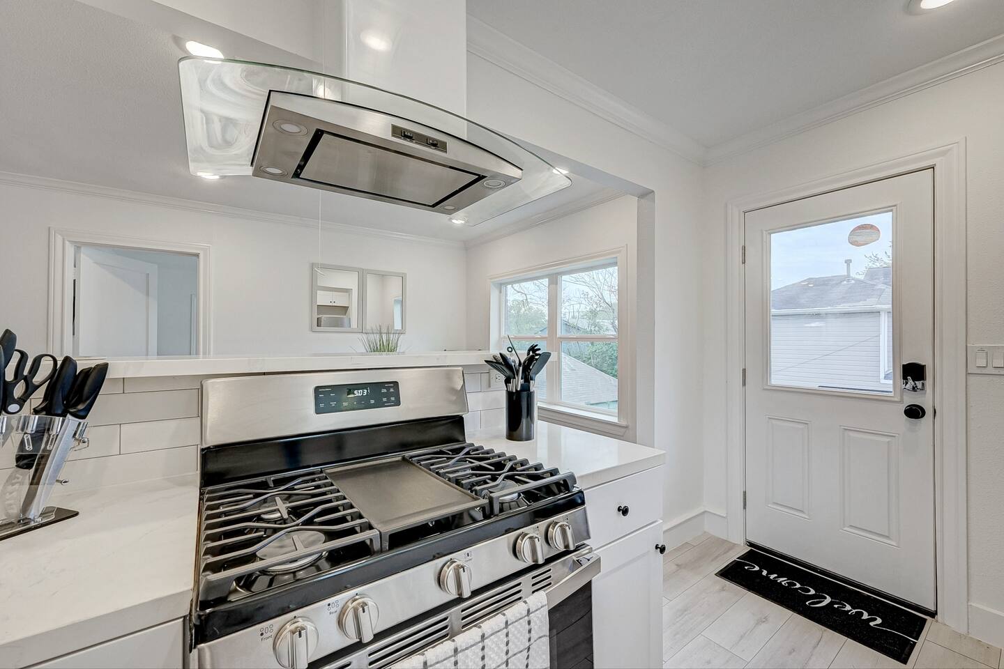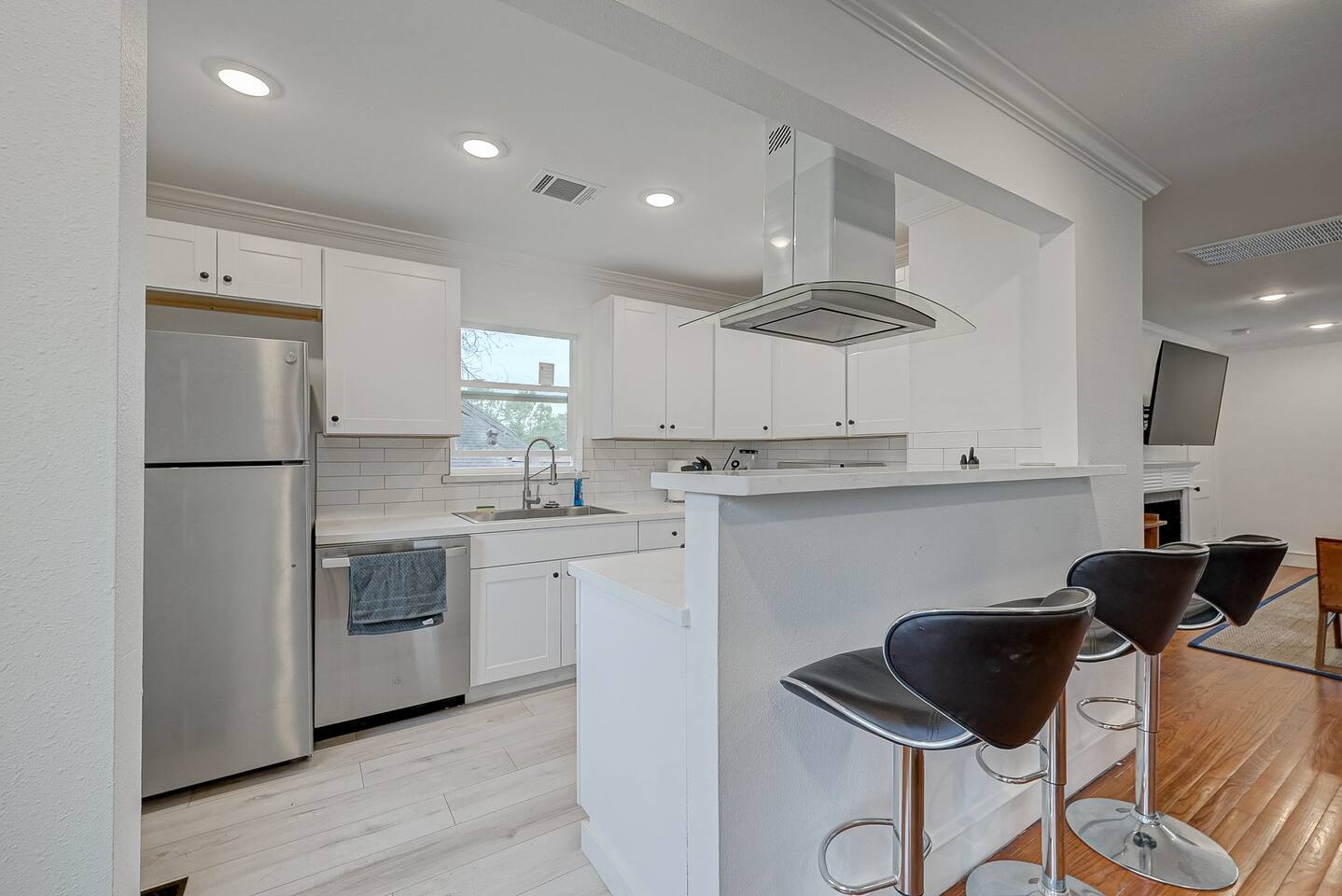 ***We always welcome guests interested in 30+ days reservations*** This newly remodeled ~1,000 sq ft duplex first floor apartment is located in the heart of Houston and offers 2BR & 1BA. We are walking distance from Houston's best restaurants, shops, and sights. The open-concept living and dining room is tastefully decorated with a modern-chic design and features a fireplace and plenty of natural light. The fully-equipped kitchen boasts new appliances, classic white cabinets, and white subway tiles. The bedrooms are equipped with king-sized beds, TVs, and connected to a 3-piece bathroom with newly remodeled vanities and subway tiles. The outdoor area is covered and decorated with hanging lights, making it suitable for any weather. It features patio furniture, a picnic bench, and a ping pong table. Pets are welcome, and the house has gated front and back areas for dogs to play in.