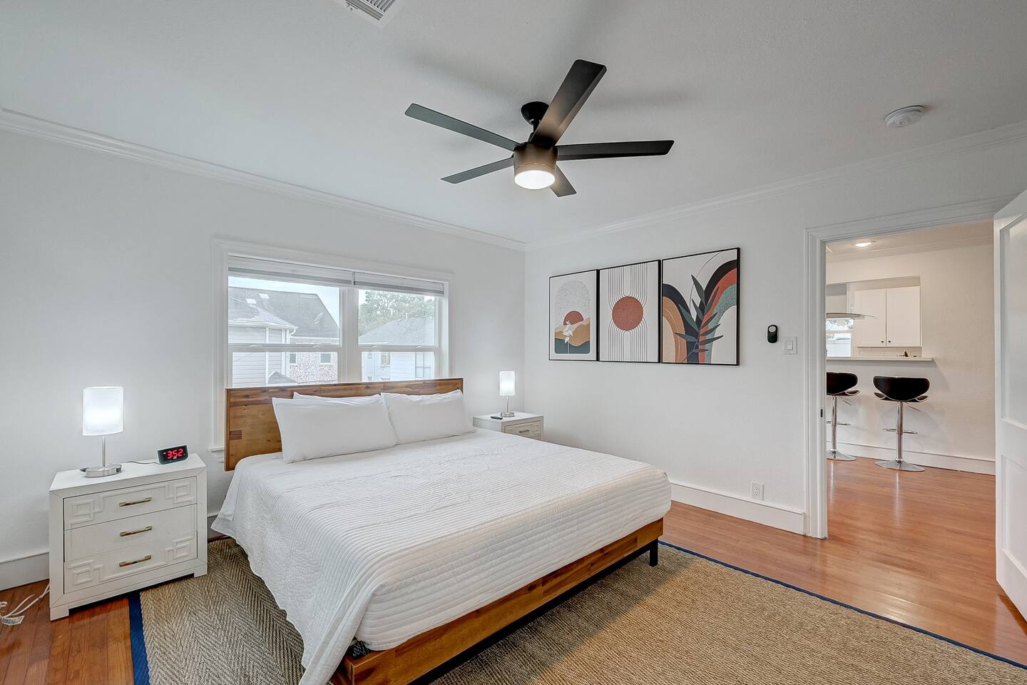 The apartment is equipped with state of the art Schlage Encode automated locks for easy and secure access, with the code and visual check-in instructions provided at least 24 hours before arrival. The apartment is on the ground floor. Guests must 3-5 stairs to access the unit. One covered and gated, off-street parking spot is provided, and additional parking is available on Fairview Street.