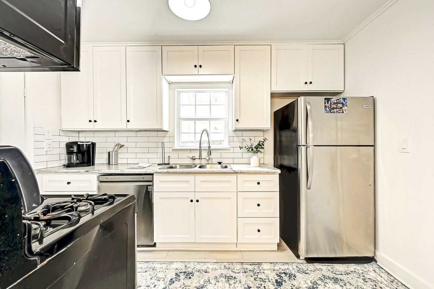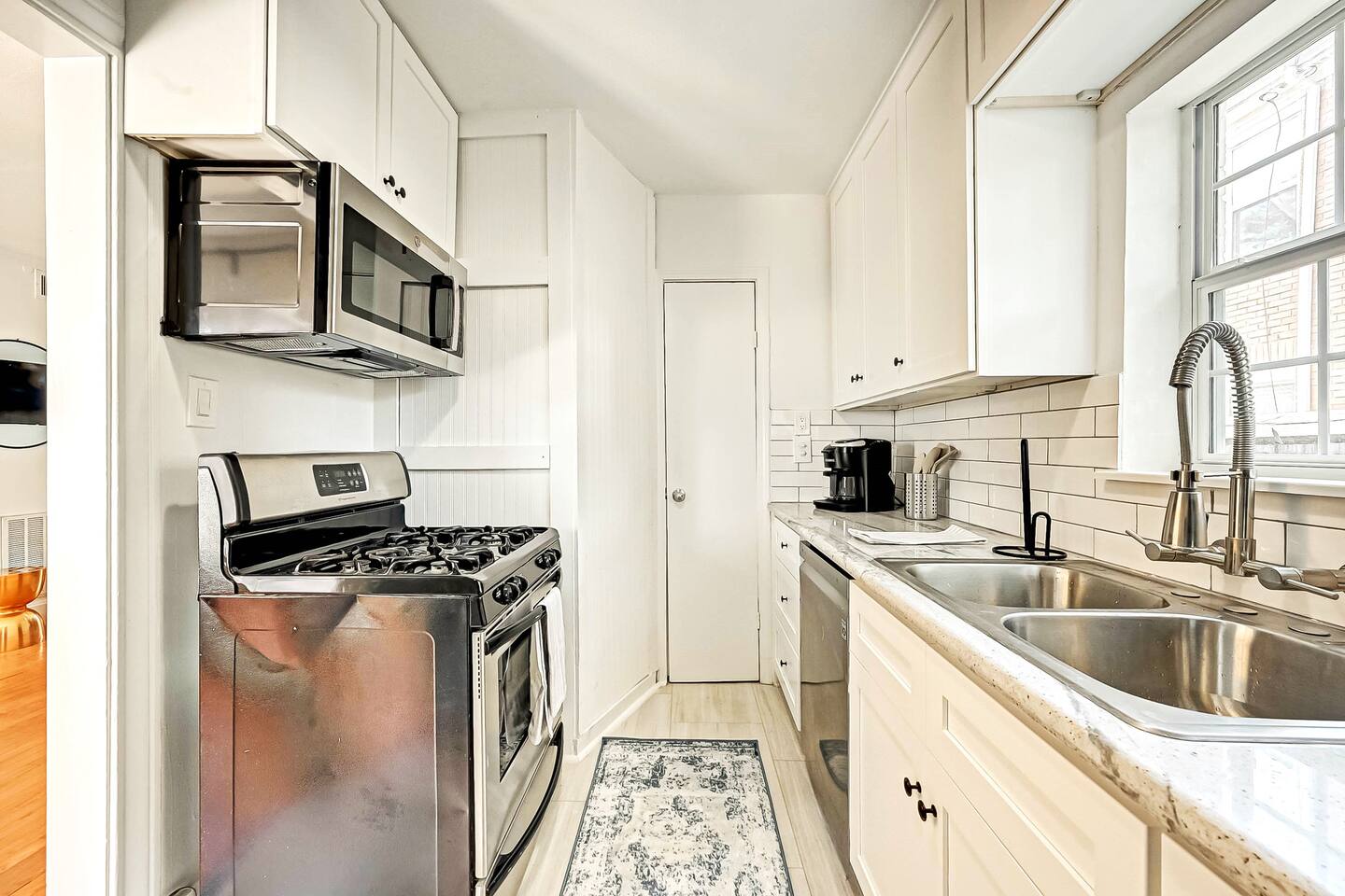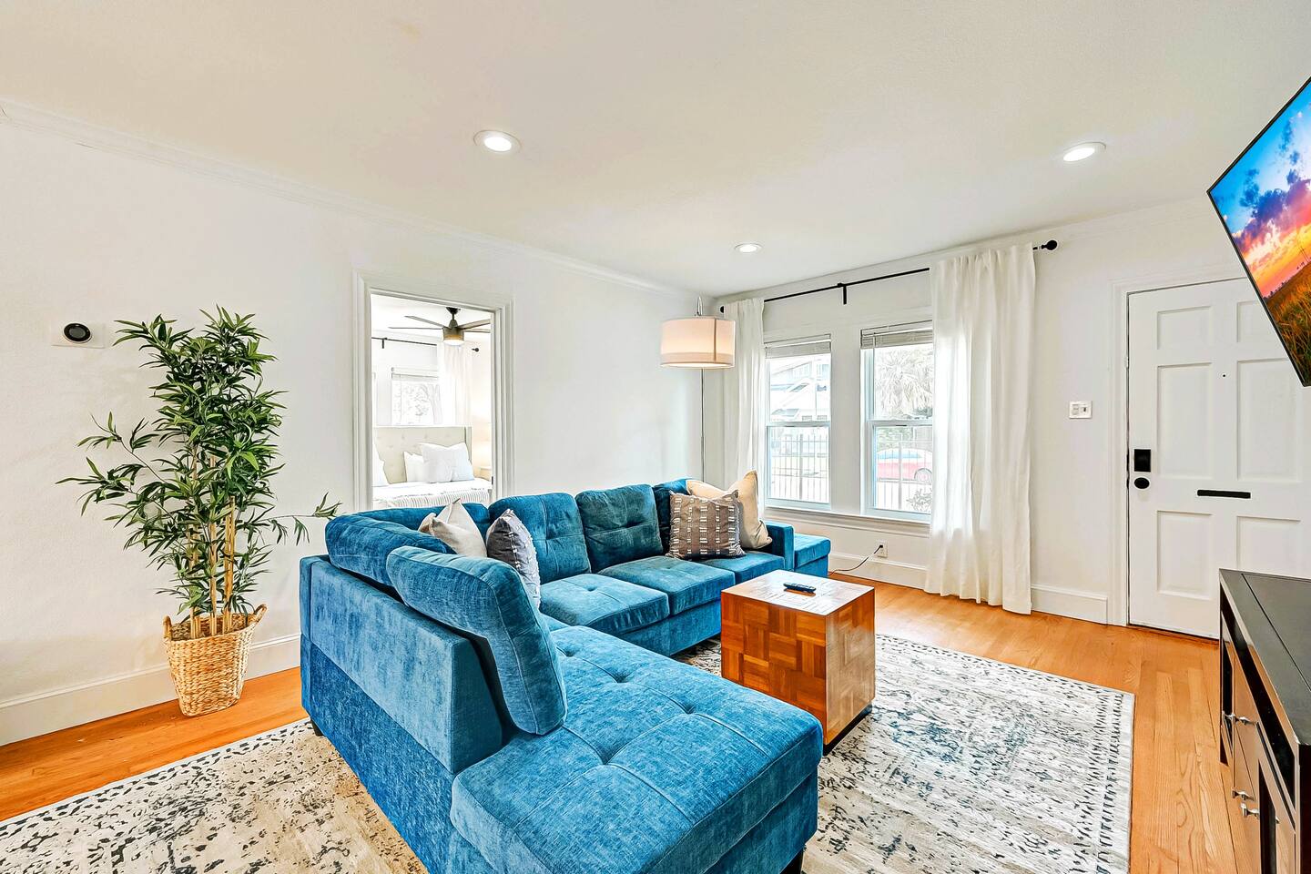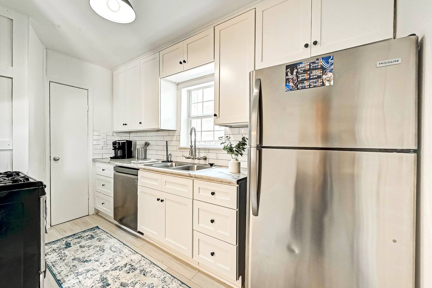 **30+ Day Guests Preferred** Please reach out to schedule a tour! Our home is a newly remodeled 2-bed/1-bath house located conveniently in the heart of Houston. We’re perfect for hosting groups of up to 4. Off-Street Parking for guests. Free and safe for additional vehicles on Fairview Street. Enjoy our tastefully decorated modern-chic open-concept living and dining rooms. With plenty of natural sunlight and a fireplace, this is a bright airy space that’s perfect for all your dining and lounging needs. The kitchen has new stove, oven, microwave, dishwasher, and fridges for all your cooking needs. Designed with classic white cabinets and white subway tiles, our kitchens are clean, bright, and look like they belong on HGTV. Gather with friends and family around the upstairs traditional dining room table or settle around the downstairs farmhouse chic dining area. While you’re here, you’ll sleep like a king. Each bedroom features a king-sized bed, two side tables, two side lamps, an overhead fan, and the luxury of a 65” TCL Internet Ready TV. No need to fight over what to watch. The bedrooms are also connected to 3-piece bathrooms. Newly remodeled with bright white subway tiles and new vanities, you’ll feel as if you’re in a hotel. Last but certainly not least is our outdoor hang out area. It’s perfect for group gatherings. It’s covered and decorated with hanging lights, so it’s suitable for any weather. There’s outdoor patio furniture and a 65” TV for your lounging pleasure. Enjoy an outdoor meal gathered around the picnic bench or the high table. We even have a ping pong table. Your furry friends are also welcome. We believe pets are a part of the family and are happy to host them as well. Our house has gated front and back areas for dogs to play in. We are located in the heart of Houston and are mere blocks away from some of Houston’s best restaurants, shops, and sights. We’d be happy to provide you with recommendations.