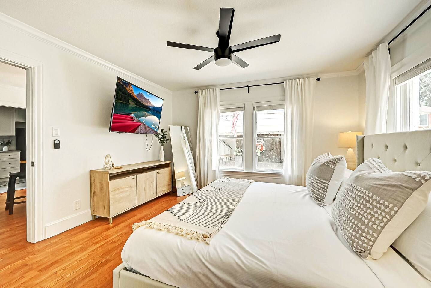 This 2-bed/1-bath house is centrally located in the desirable neighborhood of Montrose. The interior has been completely remodeled with new kitchen, new bathroom, & new furniture. Tastefully decorated with fashion & functionality in mind, this home features a total of 2 bedrooms, 1 bedrooms, 1 living room & 1 kitchen. All bedrooms have king-sized beds and the house comfortably sleeps 4 guests. Every bedroom has its own 65” TV. We also have an outdoor area perfect for gatherings.