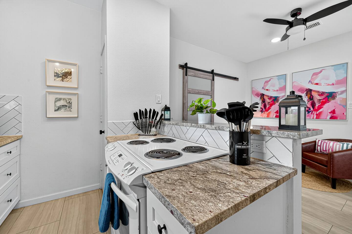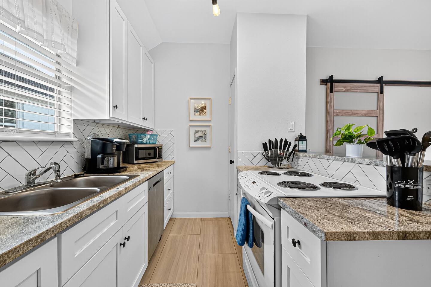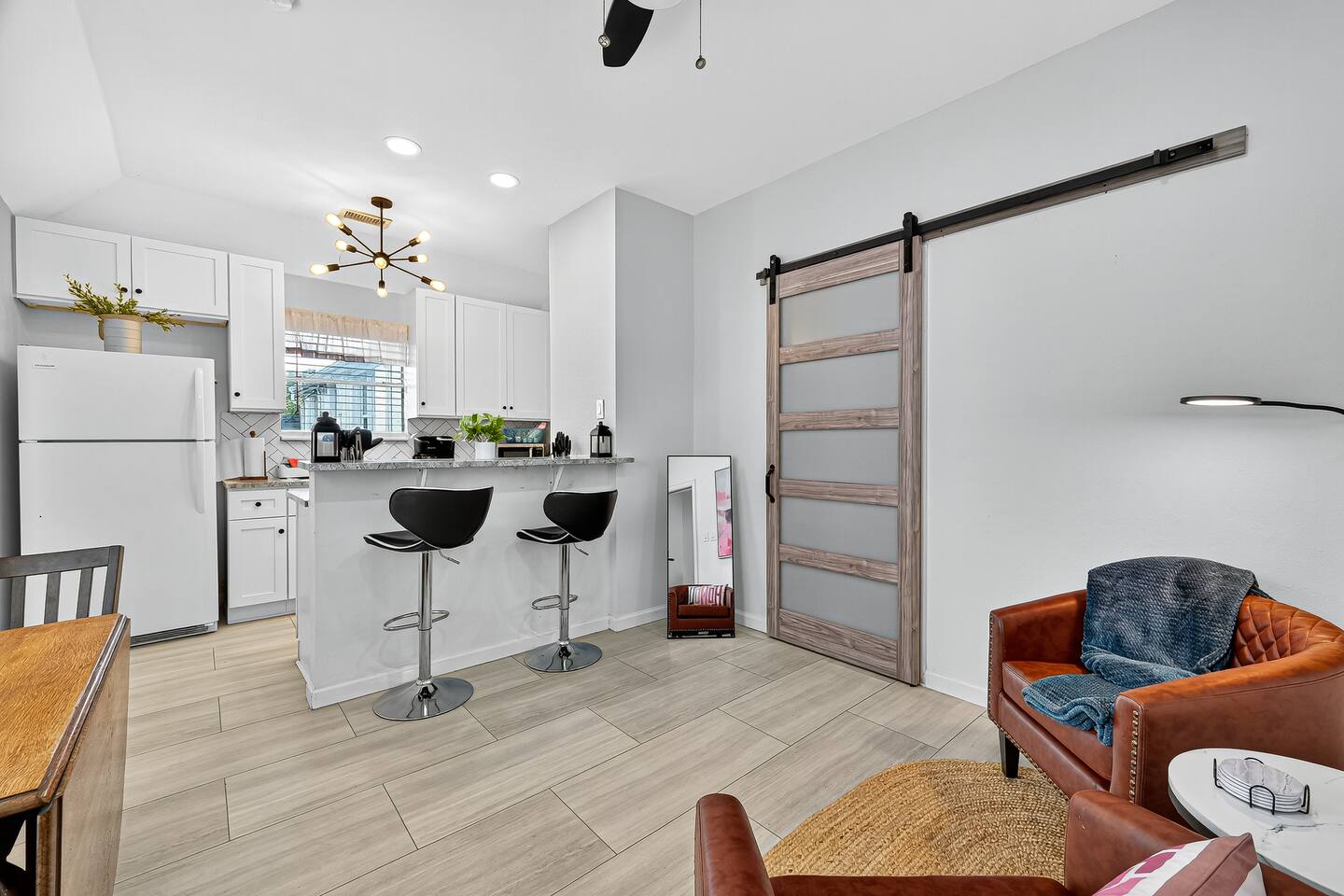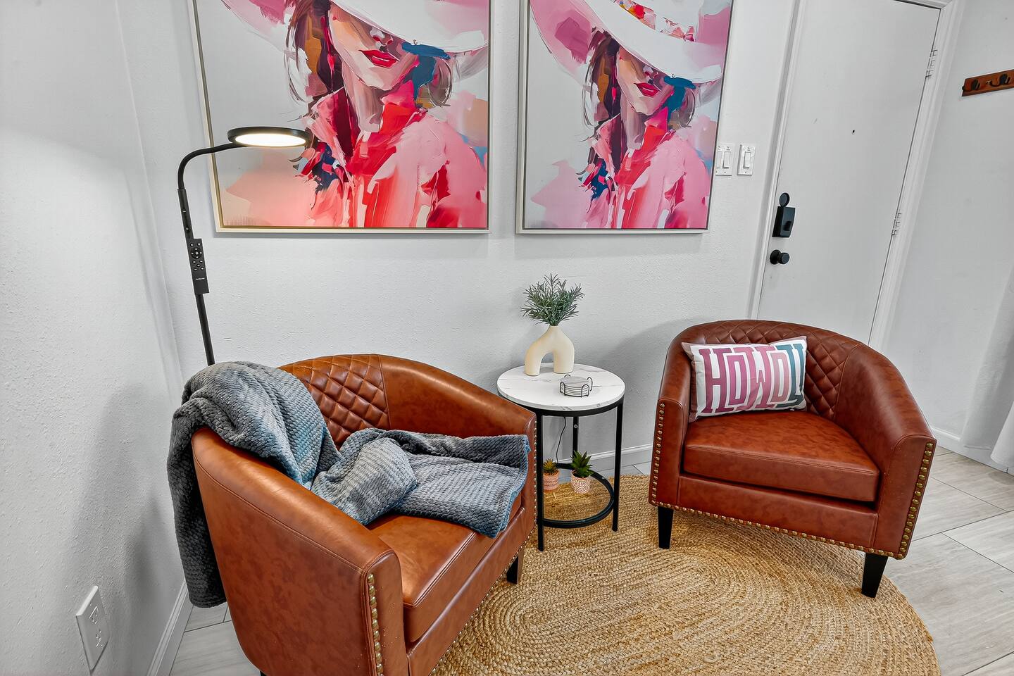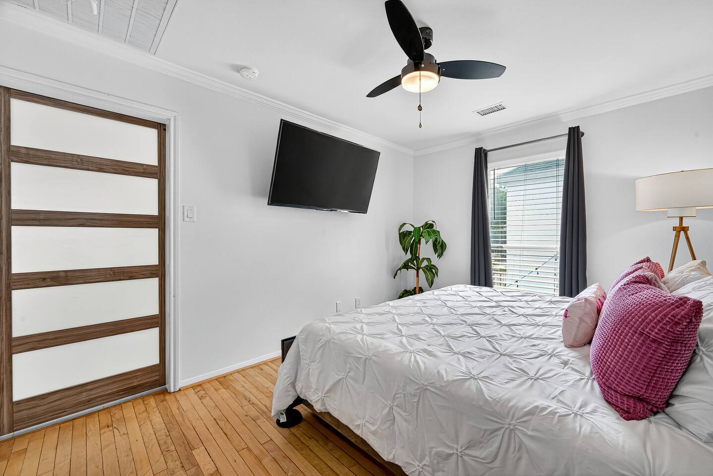 This 1-bed/1-bath, 2nd floor duplex apartment, is centrally located in the Montrose neighborhood. Tastefully decorated with fashion & functionality in mind, features include 1 bedroom (king bed only), 1 bathroom, 1 kitchen & and an outside washer/dryer. Guests enjoy covered, gated and off-street parking for one vehicle. The recently remodeled kitchen is fully equipped with new appliances. The kitchen & master bedroom have their own 65” TV. We also have a shared outdoor area.